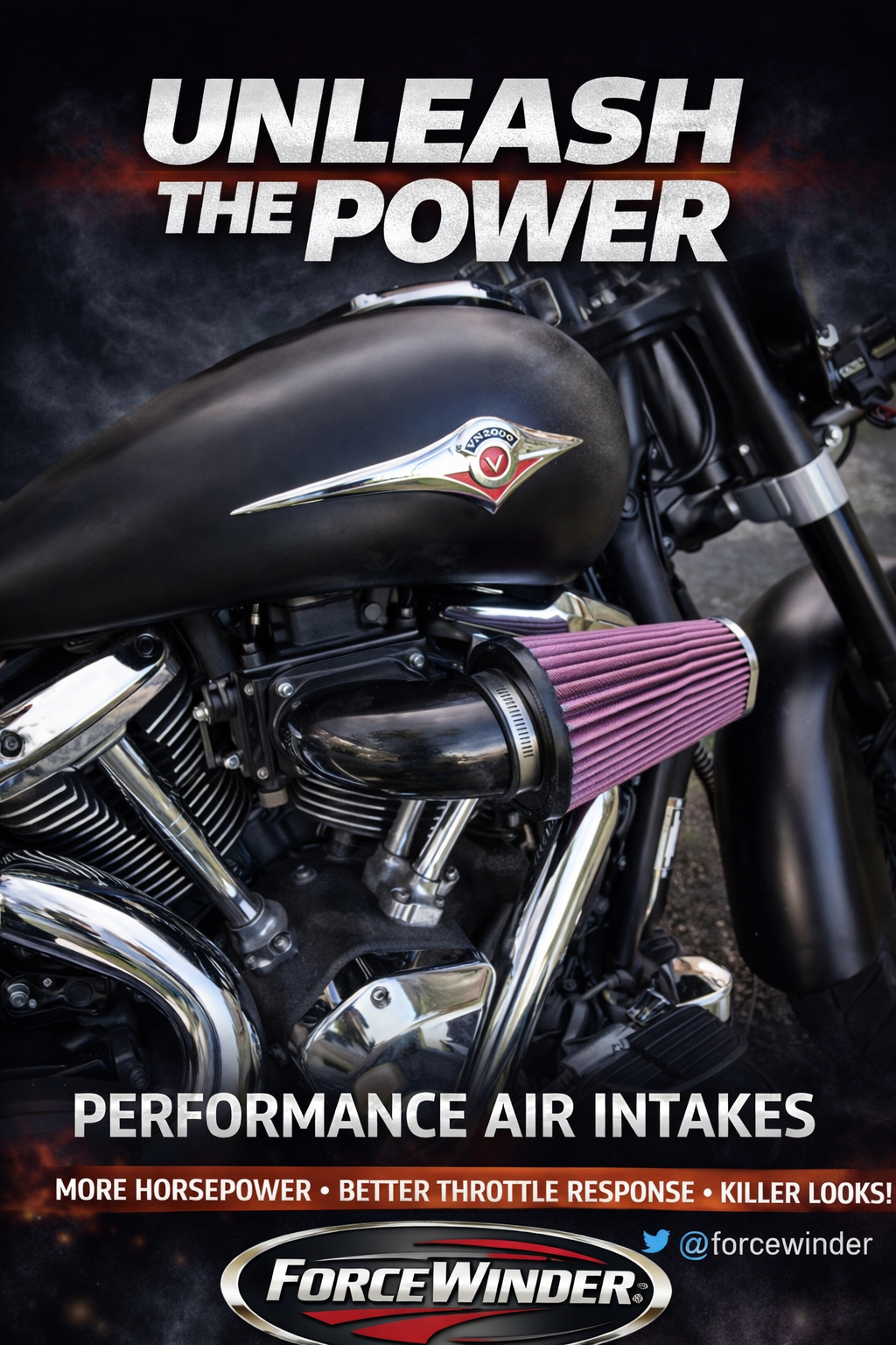 Own the road with the Kawasaki Vulcan 2000’s monstrous 2053cc V-twin — and feed it the air it craves. The ForceWinder intake transforms this powerhouse with: