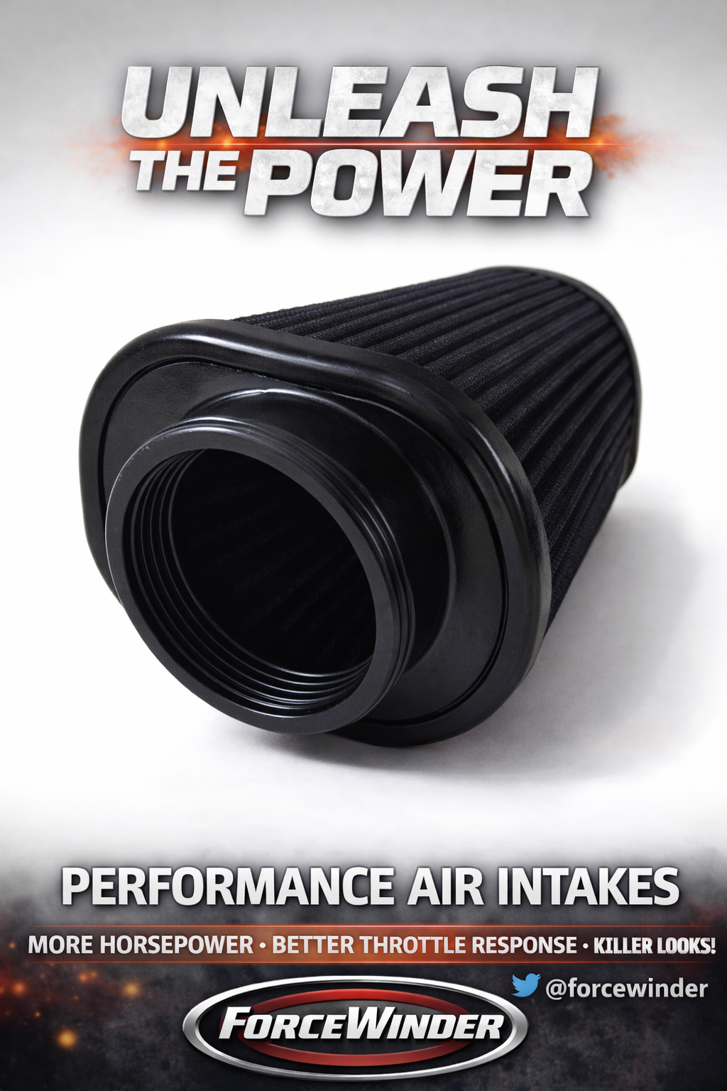 OEM replacement filter for the ForceWinder XR Filter. The intake whole is centered on back of the filter. Please take note that this is our very own ForceWinder XR Air Filter! “ID of opening for elbow is 2.5”